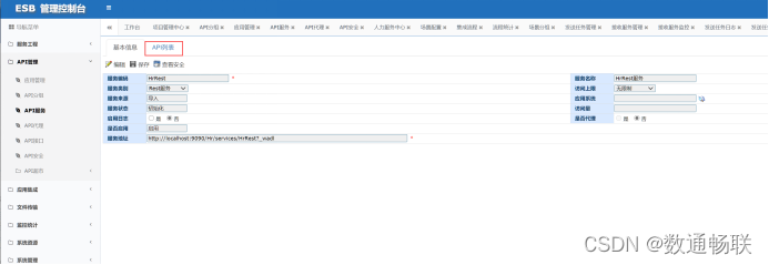 双击HRRest服务,点击“API列表”按钮进行配置。