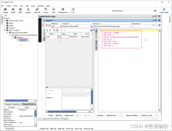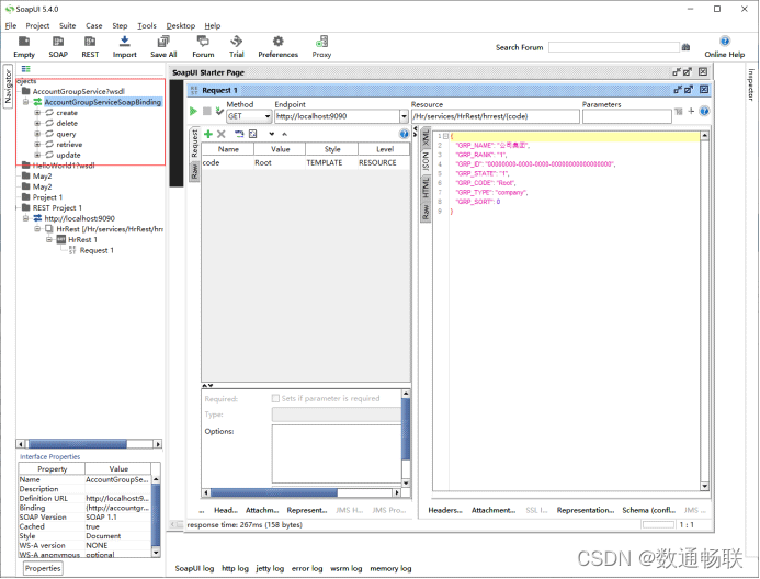 选择出参信息,到SoapUI中复制刚刚运行HRRest服务生成的信息,然后粘贴至出参信息中。