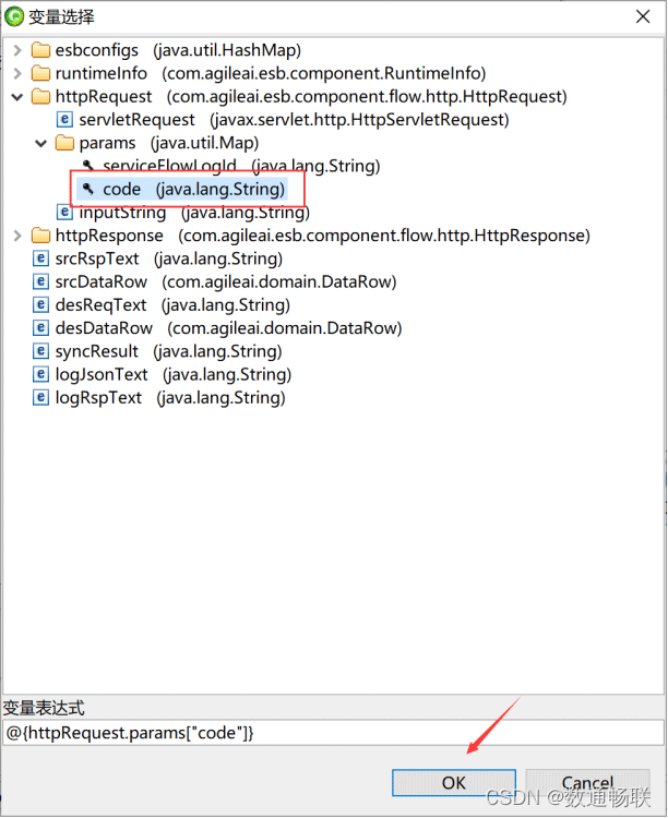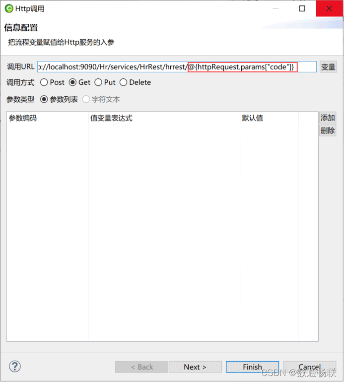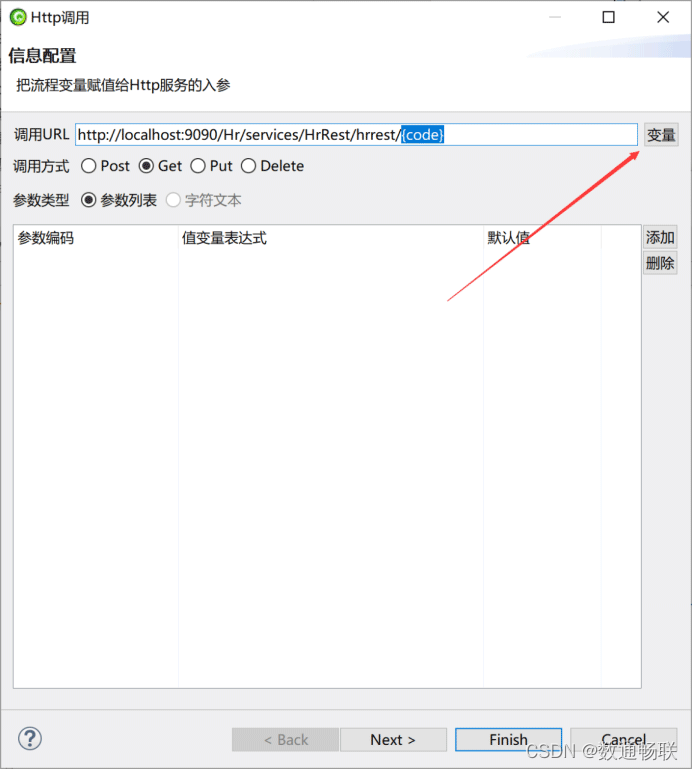 双击“源数据调用”,删除调用URL后面的{code},点击“变量”。
