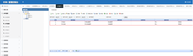 部署成功后,会在AEAI ESB管理控制台“服务工程”模块中显示新建的两个应用。