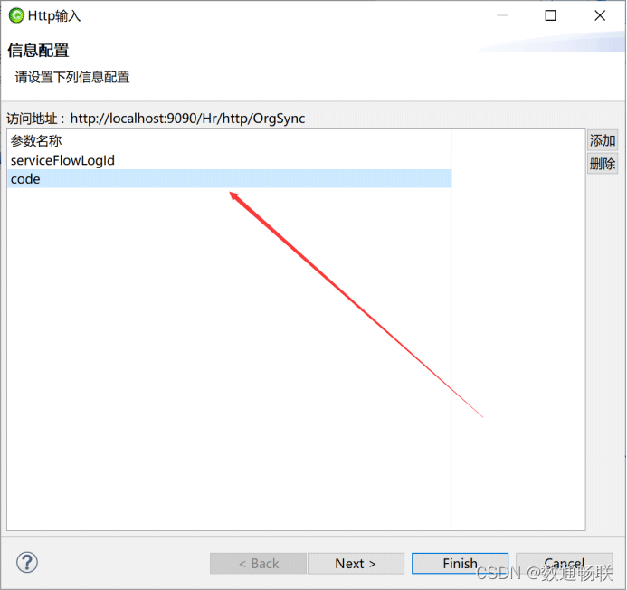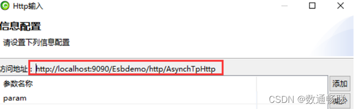 双击“HttpREquest”在弹出页面中点击“添加”添加参数名称param,如下图: