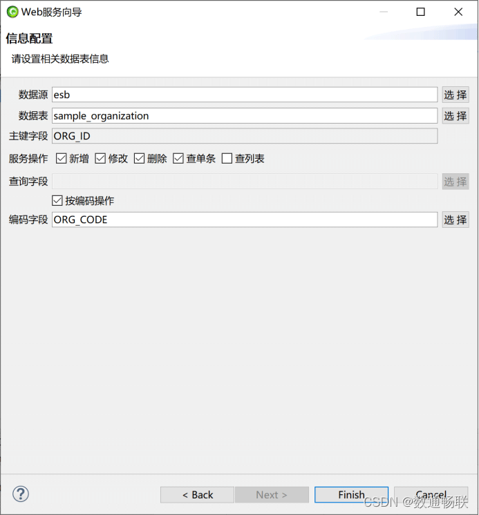 接下来在目标工程创建Web服务大致一样,和源业务系统不同的是,目标业务系统是在本次演示作为数据服务的消费者,而源业务系统作为数据的提供者。在源工程中是对数据进行查询操作,这里是数据的插入或变更操作。