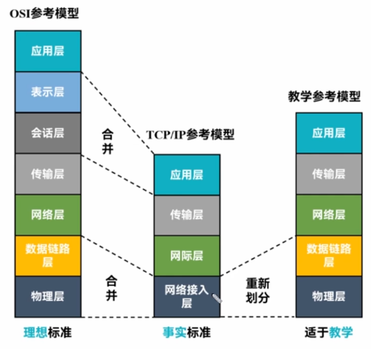 - 应用层:在功能上等同于OSI模型中的应用层、表示层和会话层之和