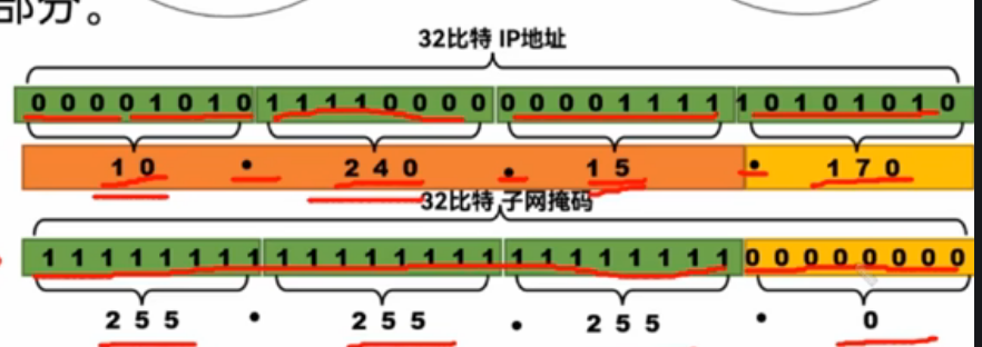 子网掩码:32位,将IP地址划分成网络地址和主机地址两部分。