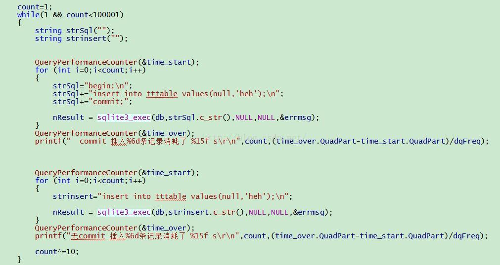 (3) 使用存储过程比单纯的插入的sql语句效率高。但是,Sqlite不支持存储过程。