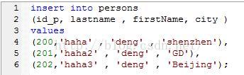 (2) 在一个insert语句中添加多个“值组”,即一个insert插入多条记录。