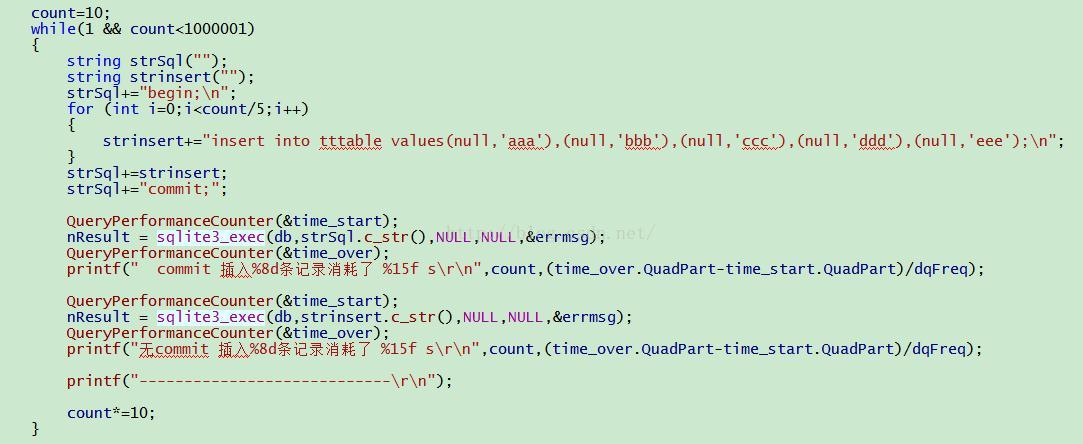 使用sqlite3提供的c++的调用方法测试插入效率。