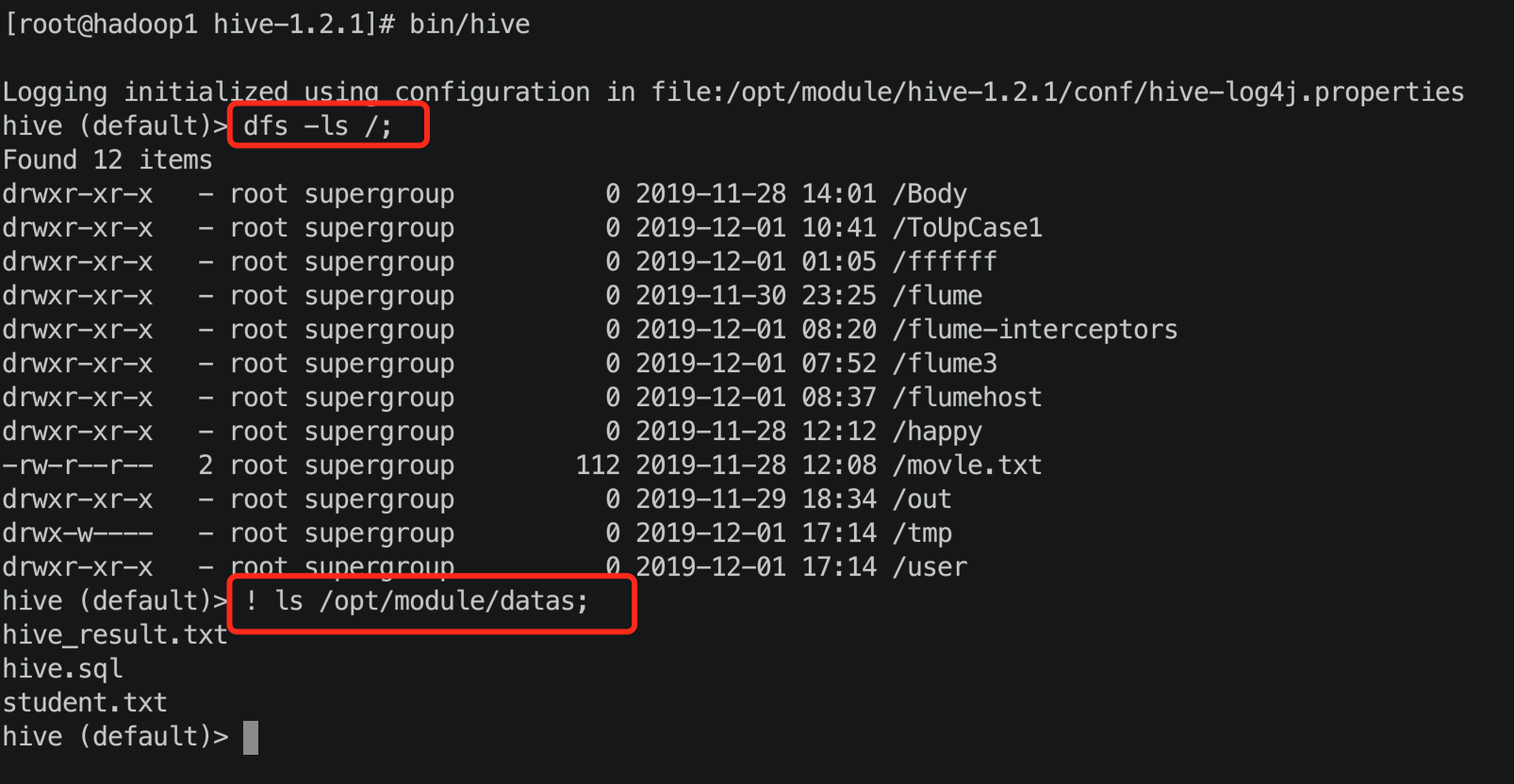2.在hive cli命令窗口中如何查看hdfs文件系统