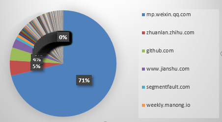 在优质的技术文章生产方面,微信公众号一骑绝尘,知乎、GitHub、简书也占有一定的比例。