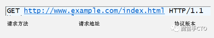 请求行位于HTTP请求的开始,由请求方法、请求地址和使用的HTTP协议版本组成,它们之间通过空格分隔,最后用回车换行(\r\n)结束。上图中使用的请求方法是GET(比较常见的还有POST),请求的地址为http://www.example.com/index.html,使用的协议版本为HTTP/1.1。