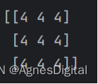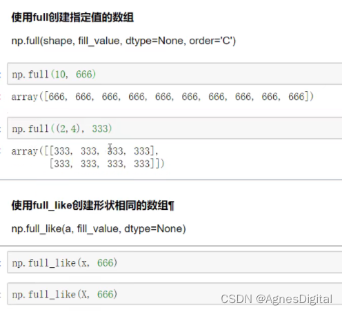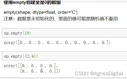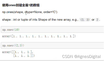 将上述代码中的ones替换为zeros,即可产生类似但全为0的数组。