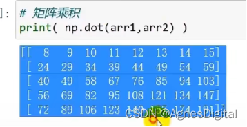 数学上,向量(一维数组)与矩阵相乘,运算遵循以下法则: