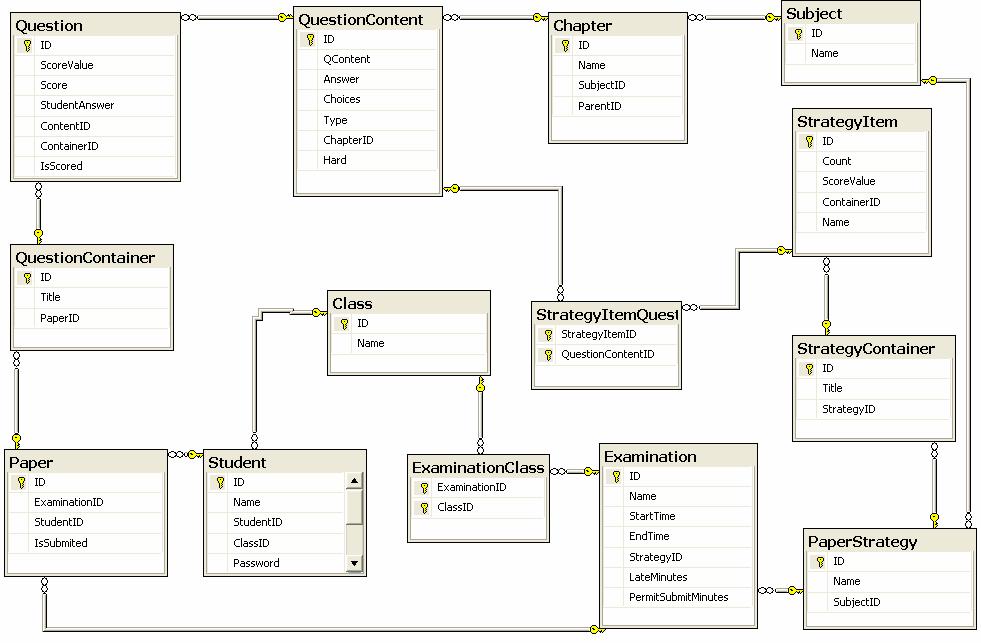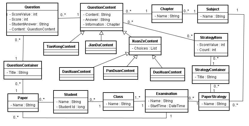 5.Question代表的是学生考卷上的题。注意是和QuestionContent是有区别的。Question包含学生答案和分值,QuestionContent只是包含一道题的基本信息。Question会引用QuestionContent这样可以减小数据冗余。