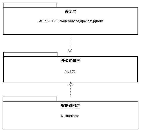 在软件体系架构设计中,分层式结构是最常见,也是最重要的一种结构。微软推荐的分层式结构一般分为三层,从下至上分别为:数据访问层、业务逻辑层、表示层。本系统也采用了这种分层的方式。下图3-2为本系统分层架构图。