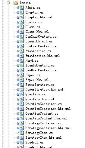 Domain包含了所有的领域类和映射文件,比如Student、Question等。大部分为数据类,没有什么行为。如图3-5所示