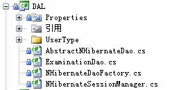 DAL包含了具体的数据Dao实现类和使用到的几个NHiernate帮助类。该包的Dao对象利用NHibernate实现了ExaminationSystem.BLL.DataInterface中定义的数据访问接口和Dao工厂接口.如图3-8所示。