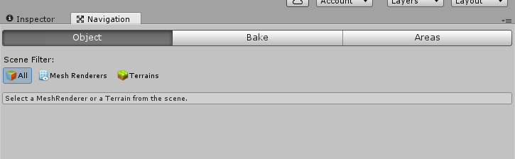 1》 在菜单栏Window->Navigation中调出烘焙设置窗口,如下: