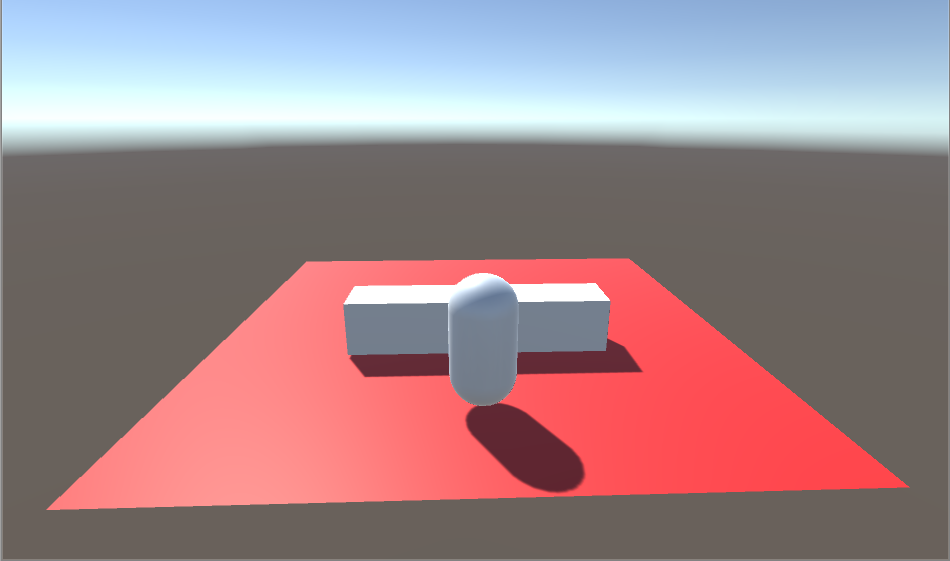 2.》 在Hierarchy窗口中选择相关的gameobject对象分别进行烘焙处理,比如说:(胶囊体为控制角色,长方体为静止物体,胶囊体不能从中穿过或从上跳过)