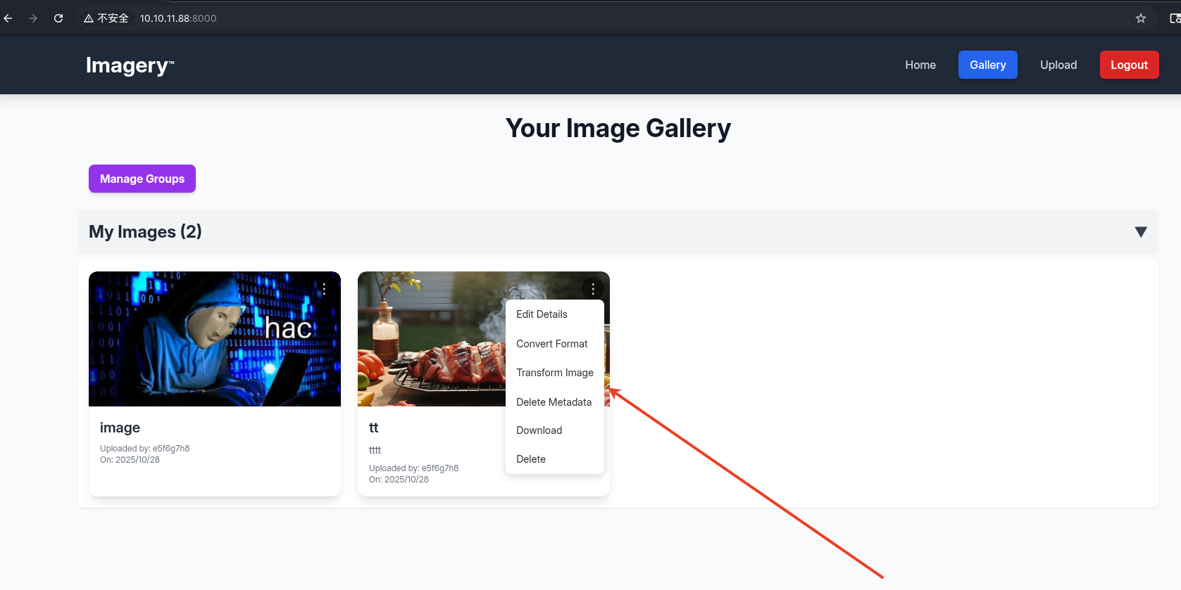 利用 testuser@imagery.htb/iambatman登录,上传一张图片: