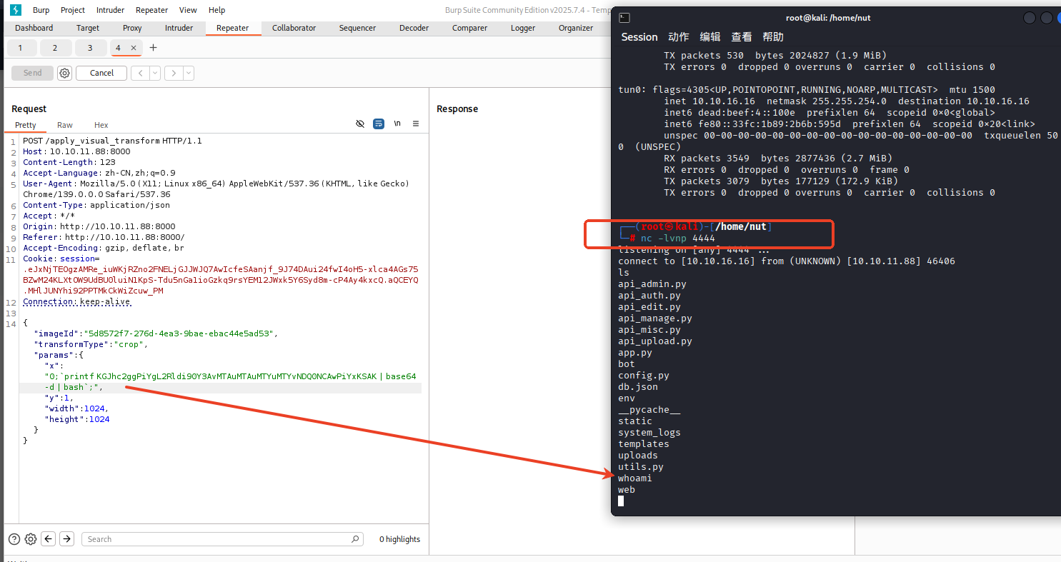 发裁剪图片功能存在注入点:传入反弹shell并打开kali监听