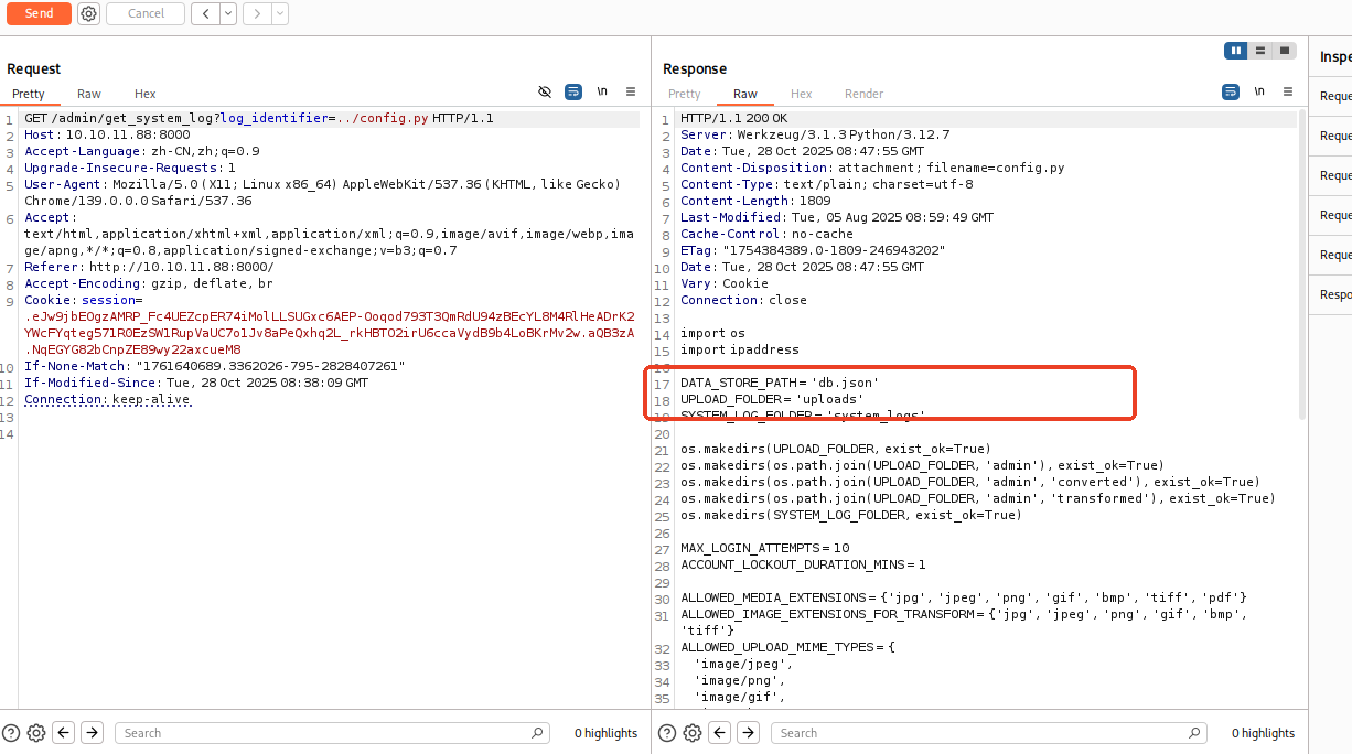 发现存在文件包含漏洞,查看文件:/config.py发现db.json: