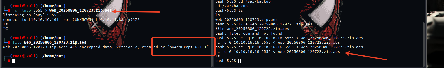 kali启动监听获取文件nc -lnvp 5555 >web_20250806_120723.zip.aes