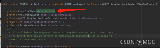 1.先点开QMUI的控件 QMUIStickySectionLayout 看源码,看滑动控件在哪里