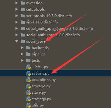我们要找到环境里的social_core目录下的actions.py
