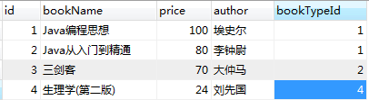 二、创建如下表结构(t_bookType)