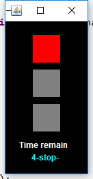 1 package signal; 2 3 import java.awt.Color; 4 5 import javax.swing.JFrame; 6 import javax.swing.JLabel; 7 import javax.swing.JPanel; 8 9 public class signalDemo extends JFrame implements Runnable { 10 JPanel red ,yellow ,green; 11 JLabel time ,show; 12 13 14 15 @Override 16 public void run() { 17 18 19 try{ 20 while(true){ 21 red.setBackground(Color.red); 22 yellow.setBackground(Color.gray); 23 green.setBackground(Color.gray); 24 for(int i=3;i>0;i++){ 25 String s =Integer.toString(i); 26 show.setText(s+"-stop-"); 27 Thread.sleep(1000); 28 } 29 yellow.setBackground(Color.gray); 30 green.setBackground(Color.green); 31 red.setBackground(Color.gray); 32 for(int i=5;i>0;i--){ 33 String s =Integer.toString(i); 34 show.setText(s+"-go-"); 35 Thread.sleep(1000); 36 } 37 38 yellow.setBackground(Color.yellow); 39 green.setBackground(Color.gray); 40 red.setBackground(Color.gray); 41 for(int i=2;i>0;i--){ 42 String s =Integer.toString(i); 43 show.setText(s+"-get slow-"); 44 Thread.sleep(1000); 45 } 46 } 47 } 48 catch(InterruptedException e){ 49 System.out.println(e); 50 } 51 } 52 signalDemo(){ 53 this.getContentPane().setBackground(Color.black); 54 this.setSize(100,260); 55 this.setVisible(true); 56 this.setLocationRelativeTo(null); 57 58 59 red=new JPanel(); 60 red.setBackground(Color.red); 61 62 green=new JPanel(); 63 green.setBackground(Color.green); 64 65 yellow=new JPanel(); 66 yellow.setBackground(Color.yellow); 67 68 setLayout(null); 69 red.setBounds(40,20,40,40); 70 add(red); 71 72 green.setBounds(40,70,40,40); 73 add(green); 74 75 yellow.setBounds(40,120,40,40); 76 add(yellow); 77 78 time =new JLabel("Time remain "); 79 time.setForeground(Color.white); 80 time.setBounds(20,160,100,40); 81 add(time); 82 show =new JLabel(""); 83 show.setBounds(38,178,80,40); 84 show.setForeground(Color.cyan); 85 add(show); 86 } 87 88 public static void main(String args[]){ 89 signalDemo sn=new signalDemo(); 90 Thread task=new Thread(sn); 91 task.start(); 92 93 } 94 95 }