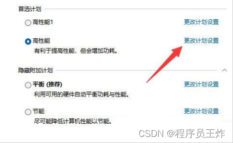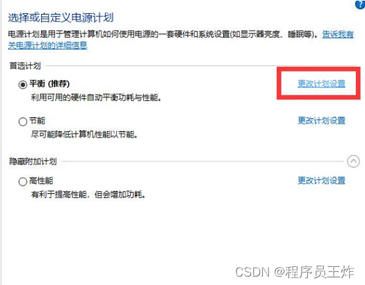 4、在其中找到使用的计划,并点击【更改计划设置】;