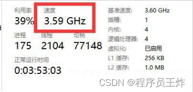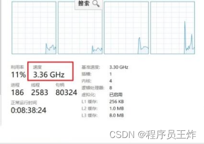 设置完毕,可以看到cpu的频率始终大于或者等于基准速度。