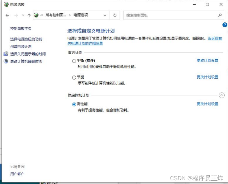 然后在弹出的菜单中选择“电源选项”。接下来选择“其他电源设置”。然后在“首选计划”中,选择“高性能”计划。