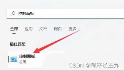 2、按键盘上的【 Win + S 】组合键,或点击任务栏上的【搜索图标】,在打开的Windows搜索,搜索框输入【控制面板】,然后点击打开系统给出的最佳匹配【控制面板应用】;