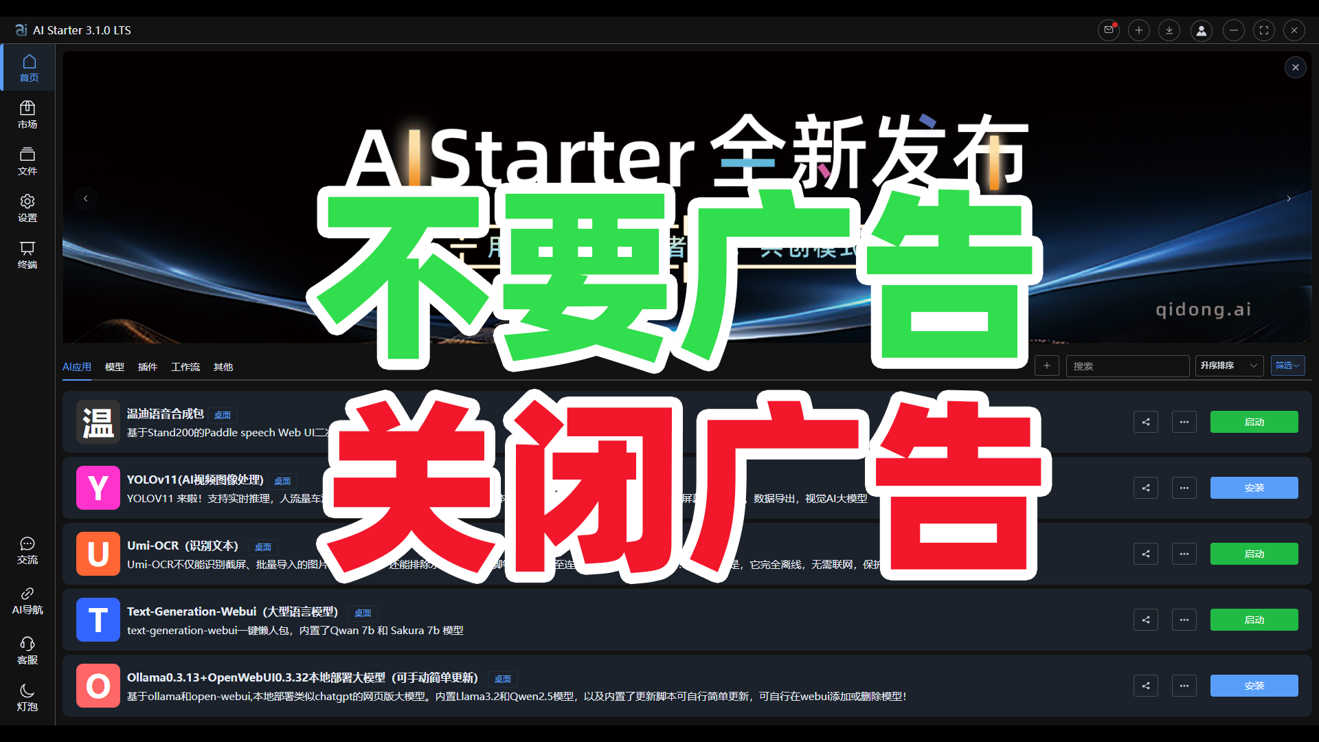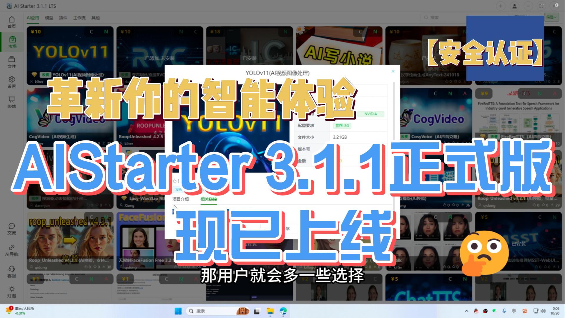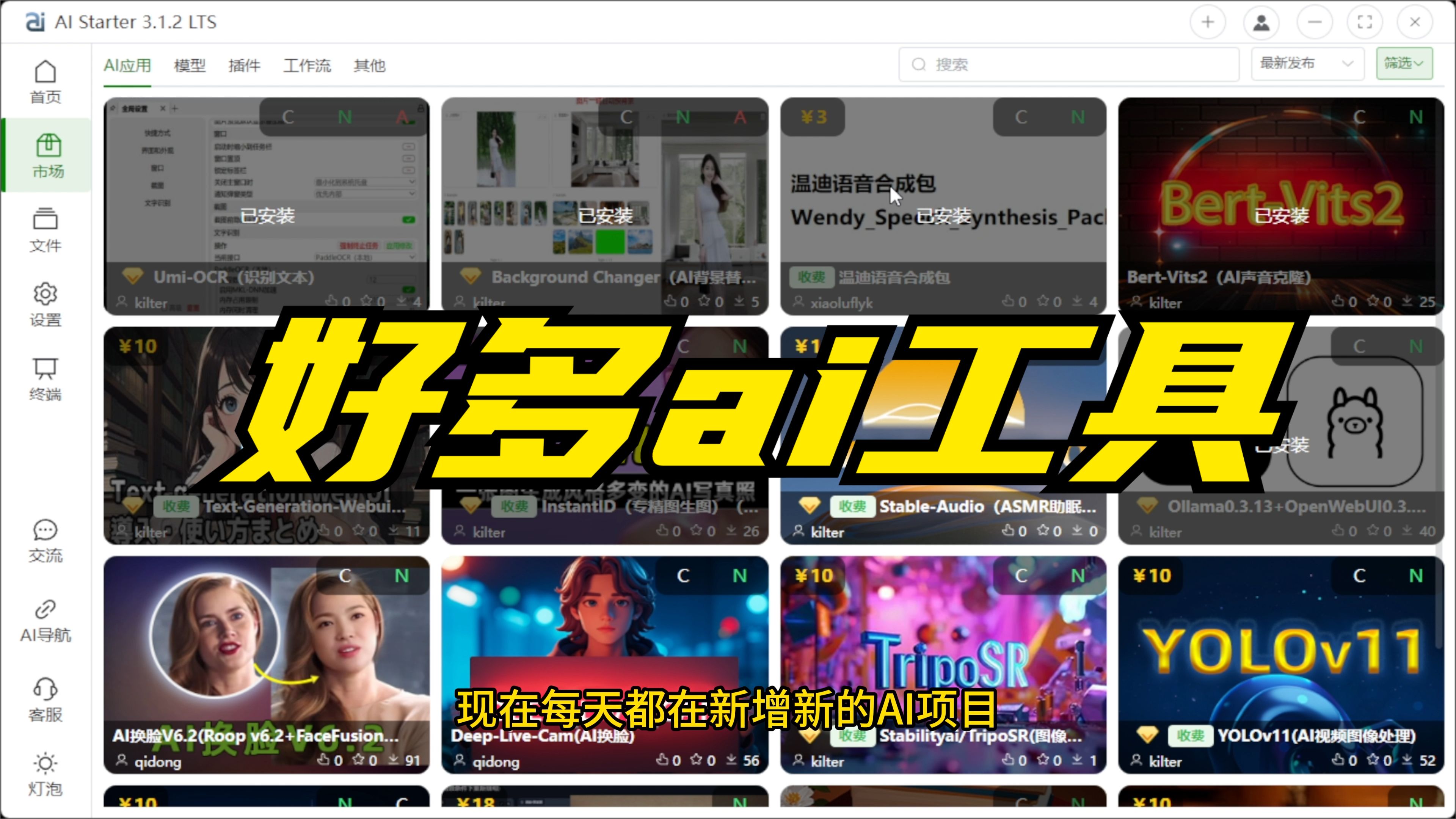 革新你的智能体验:AIStarter 3.1.1正式版现已上线【安全认证】ai应用市场,数字人,ai绘画,ai视频,大模型,工作流因有尽有 在这个日新月异的技术时代里,人工智能(AI)正以前所未有的速度改变着我们的生活与工作方式。作为行业内的先锋之一,我们非常高兴地宣布:经过团队不懈努力以及严格的测试与优化后,!这不仅仅是一次简单的软件更新;它代表着我们在追求更高效、更智能解决方案道路上迈出的一大步。