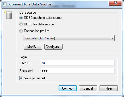 12、选择数据源ODBC machine data source,并填写 连接数据库的用户名密码,点击Connect。