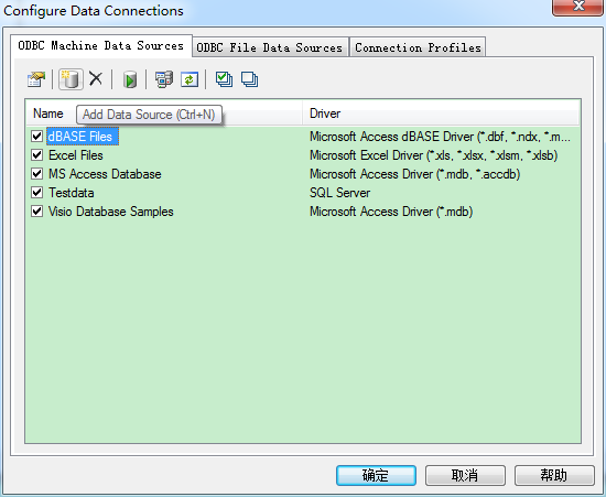 1、配置数据库连接 Database=》Configure Connections,在ODBC Machine Data Sources 选项卡上点击 Add Data Source