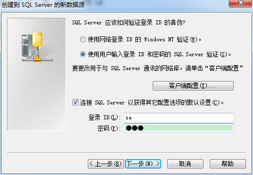 6、在窗口中,选择使用用户输入登录ID和密码的SQL Server验证(s),填写连接数据库的登录名、密码。