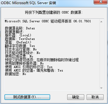 9、点击测试数据源,测试无误,选择确认按钮。
