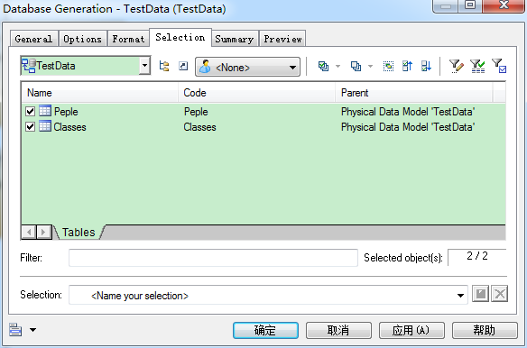 这里可以选择pdm中哪些对象生成sql脚本