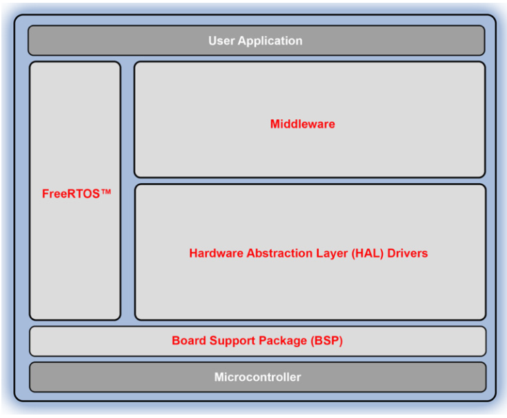 在板级支持包 (BSP) 之上是硬件抽象层 (HAL),它以较小的内存占用量为外设提供高效的设备驱动程序,并且与MCU 的寄存器一致,以实现易于使用的接口,使程序员无需考虑具体的硬件。它是模块的集合(参见图 2-3),每个模块都是 RA 产品家族微控制器中可用的外设的驱动程序,如串行外设接口 (SPI) 或模数转换器 (ADC),其名称以 r_ 开头,便于与灵活配置软件包 (FSP) 的其他部分区分开来。所有这些模块本质上均与 RTOS 无关。