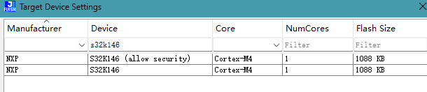 使用j-flash在创建s32k146的烧录工程时,在选择芯片的时候会出现2个选项,该选哪一个?