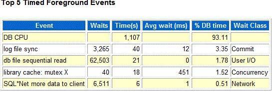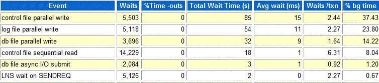 单纯的从TOP 5 event,基本上是看不出任何东西的,可能有人会说这里log file sync等待不是有点高了吗? 实事求是的讲,12ms确实超过