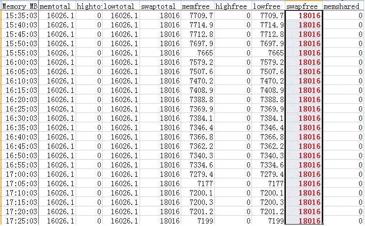 同时对于内存的使用,freemem也是突然下降的相对比较厉害: