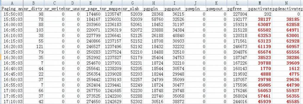 从数据库层面无法看到有价值的信息,那么我们就得从其他方面入手了,从客户提供的nmon监控数据,我们发现了有价值的信息: