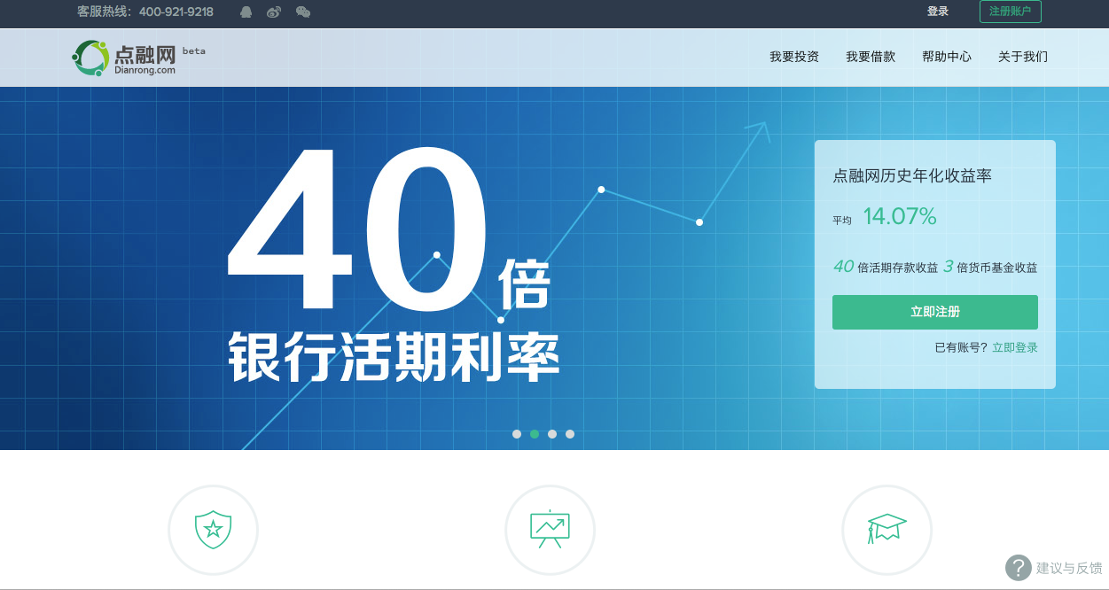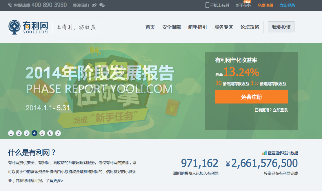 有利网 也不是P2P模式,而是以理财产品为主要销售内容。提供了新手指引、服务专区、论坛攻略等板块来引导及提供讨论的空间。值得一提的是,有利网号称是第一家完成B轮融资的互联网金融企业,嗯前景很美好啊。