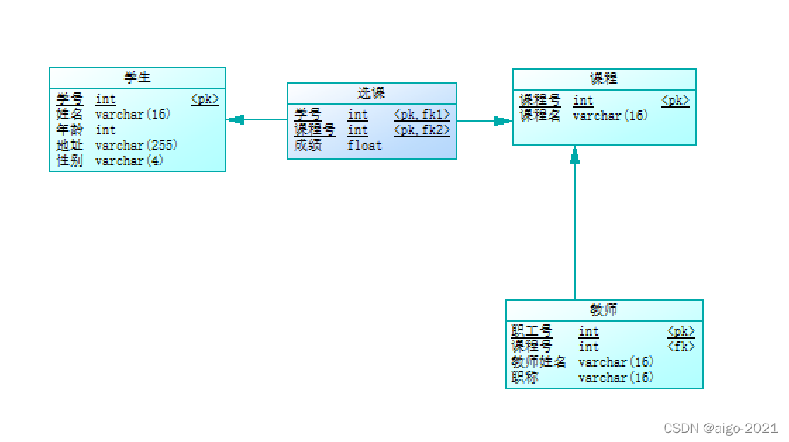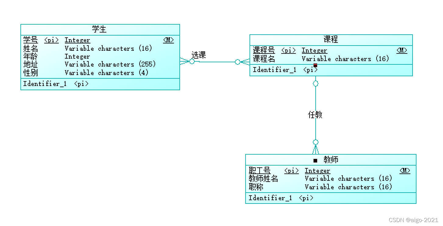 假设每个学生选修若干门课程,且每个学生每选一门课只有一个成绩,每个教师只担任一门课的教学,一门课由若干教师任教。“学生”有属性:学号、姓名、地址、年龄、性别。“教师”有属性:职工号、教师姓名、职称,“课程”有属性:课程号、课程名。