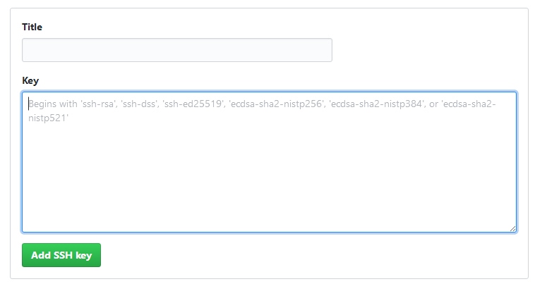 id_rsa 是私钥, id_rsa.pub 是公钥,我们需要把公钥添加到 github , 把 id_rsa.pub 里面的内容添加到 github 上: