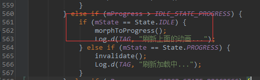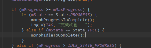 在morphToProgress() 方法,实现了从初始化到圆环状态的过度.在setListener(mProgressStateListener)中当动画完成的时候将mState 置为Progress