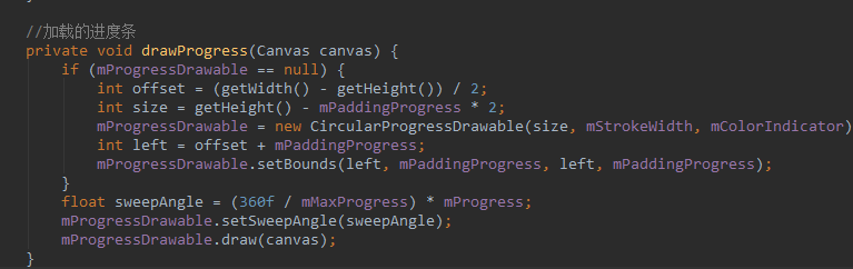 在动画完成后,在setProgress 中将进行不断的界面刷新invalidate() 在调用此方法,则系统将进行重绘调用onDraw()方法